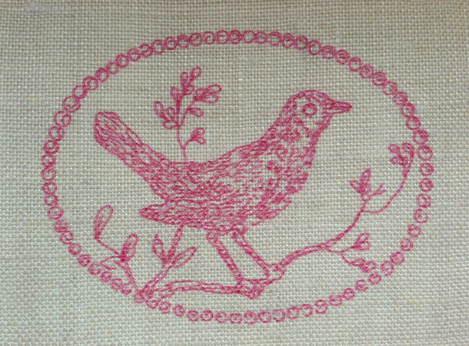 A Beautiful Bird Print on Linen in Pink